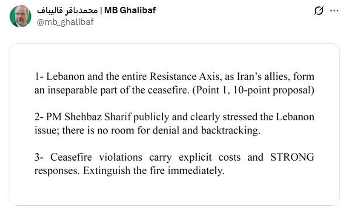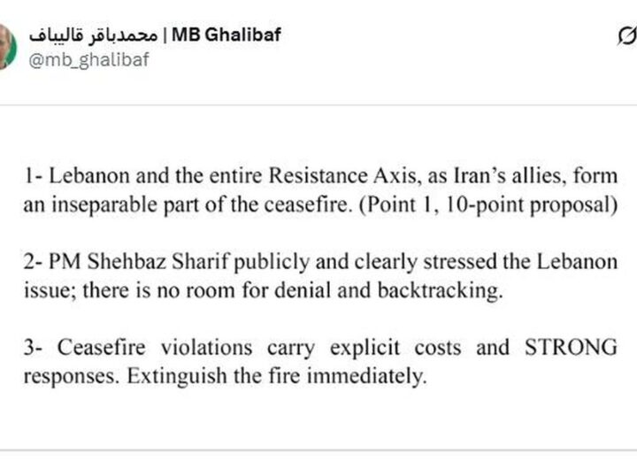 İran Meclis Başkanı Muhammed Bakır Galibaf, ABD ile sağlanan iki haftalık ateşkes anlaşmasının Lübnan’ı da kapsadığını belirterek,...
